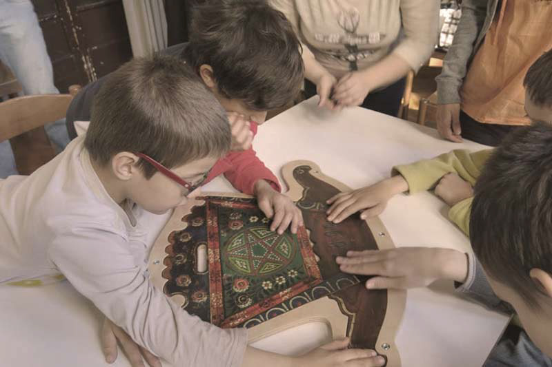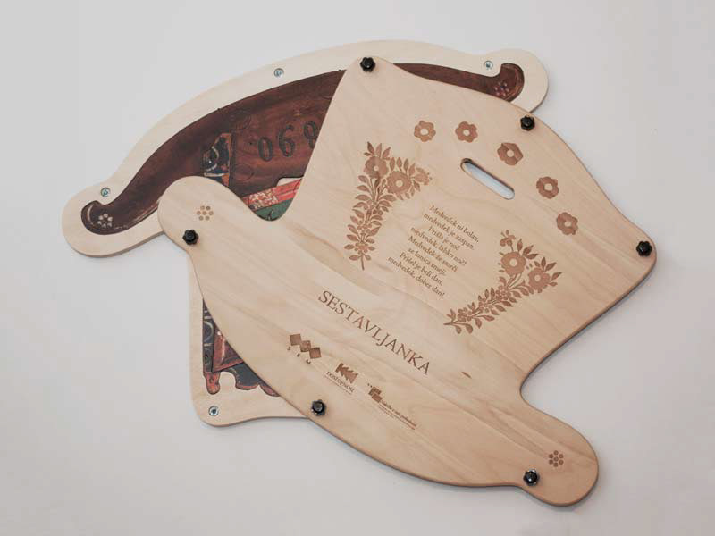 This big puzzle (ca. 80 cm × 80 cm) was a unique play tool for children with special needs. Even for children who were blind as it had a special 3d relief illustrations. Ordered by: Slovene Ethnographic Museum, Accessibility of Cultural Heritage to Vulnerable Groups.